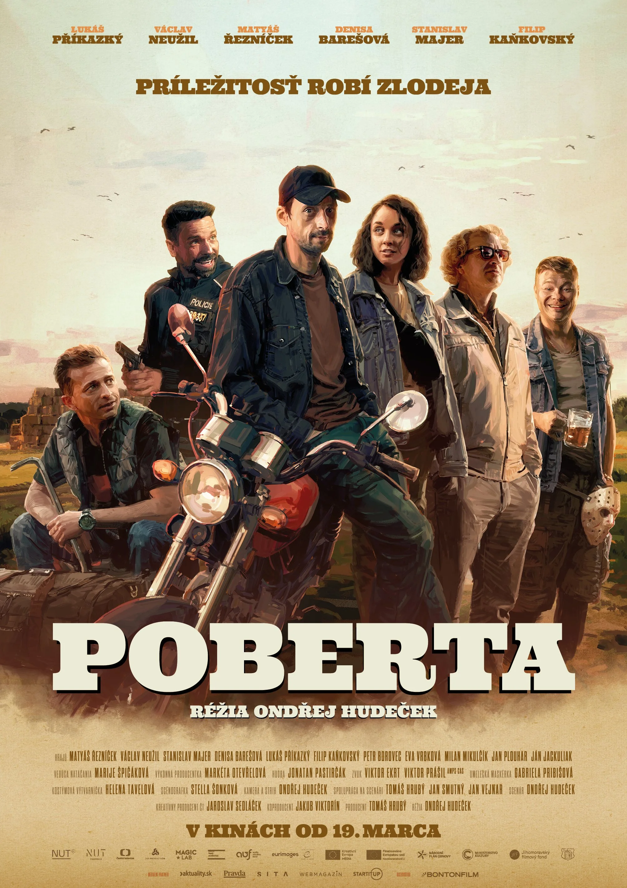 Poberta je zlodej, lupič, chmaták, podvodník, darebák a gauner, ale aj „hrdina“ zlodejskej komédie Ondřeja Hudečka – vôbec prvého českého režiséra, ktorý zvíťazil na svetoznámom filmovom festivale Sundance. Svoju filmovú novinku zasadil do rodnej Strážnice počas lockdownov a do hlavných úloh obsadil Matyáša Řezníčka, Denisu Barešovú, Stanislava Majera, či Filipa Kaňkovského. Slovenské publikum sa môže tešiť aj na Milana Mikulčíka, Martina Nahálku či Jána Jackuliaka. Atmosféru miesta dotvárajú miestni neprofesionálni herci a slovácke nárečie, zatiaľ čo výnimočnosť doby pripomínajú zo dňa na deň sa meniace pravidlá, ktoré umožňujú naplno rozvinúť český národný talent.